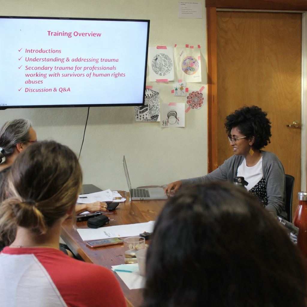 developed workshops on burnout, moral injury, and trauma-informed interviewing for therapists, attorneys, and journalists;